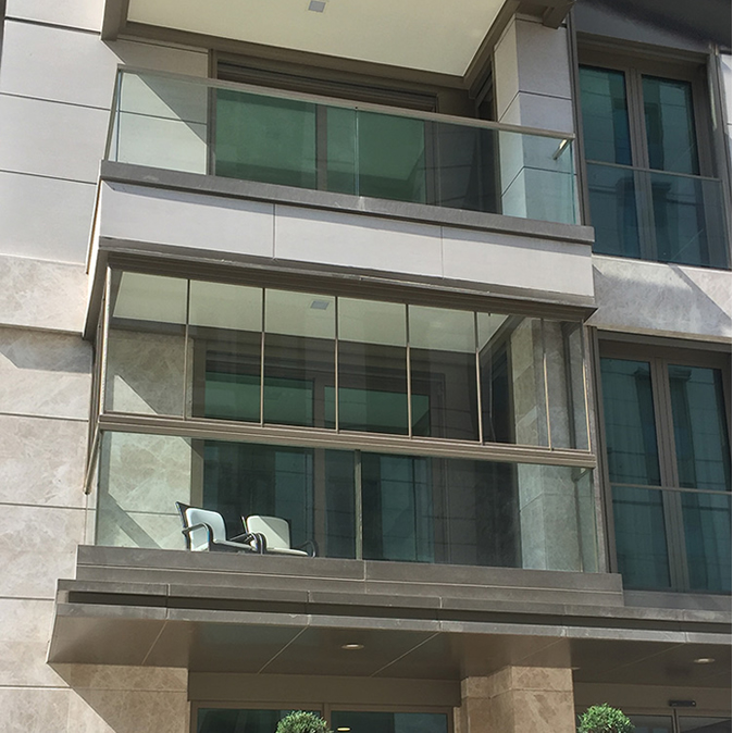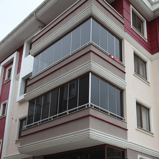 Uygulanacağı tüm cam balkon sistemlerine uyum sağlayan donanımları, manzaradan ödün vermeyen yapısı ve tüm mekanları tamamlayacak 8 farklı renk seçeneği ile kullanıcısına bütünleyici bir alan tasarımı yaratır.