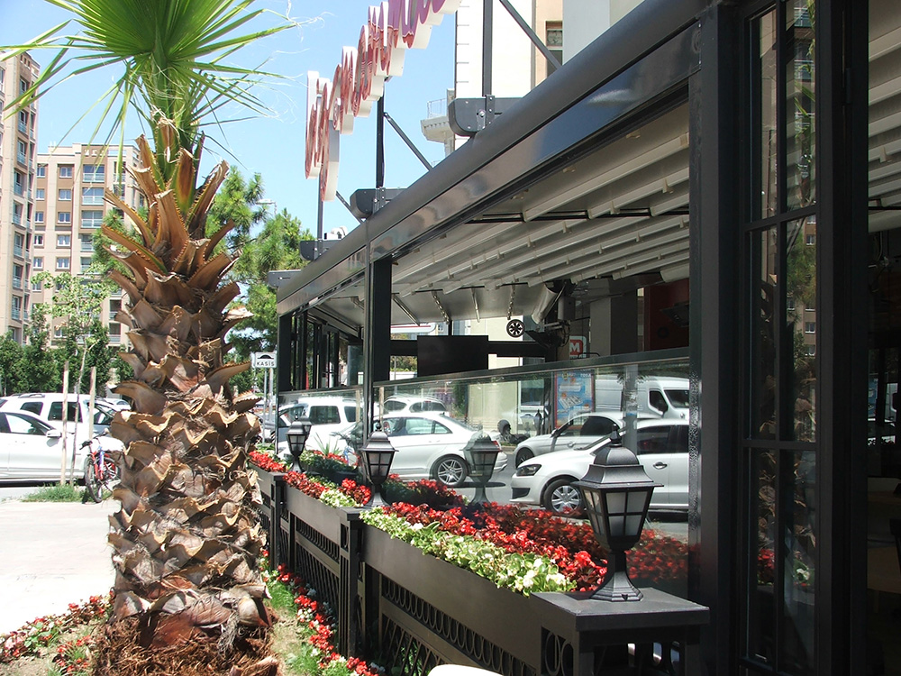 Camoda Hareketli Küpeşte sistemi işletme sahiplerine geleneksel hareketli alüminyum cam sistemlerinin yerine yeni nesil bir çözüm sunar. Farklı alüminyum ve cam rengi seçenekleri ile mekanın bütünlüğünü bozmadan işletmelere şık bir tasarım katarken, aynı zamanda hacim ve değer kazandırır.
